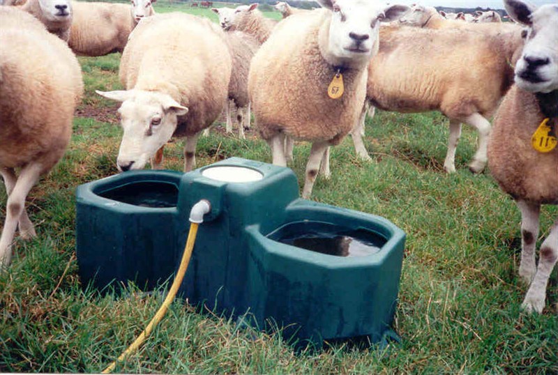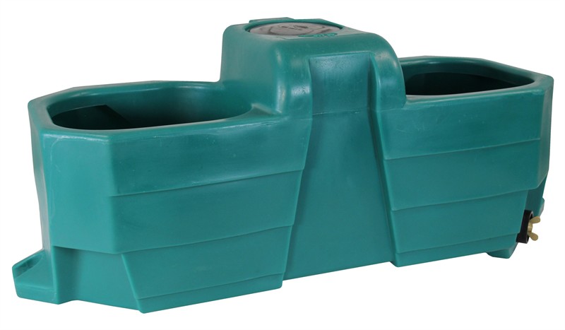 Schwimmertränke aus hochwertigem UV-beständigem Polyethylen mit zwei Tränkstellen, Inhalt 60 l bei maximalem Schwimmerniveau.