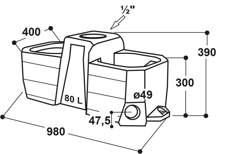 • Mit grossen Ablauföffnungen, zur einfachen und schnellen Entleerung