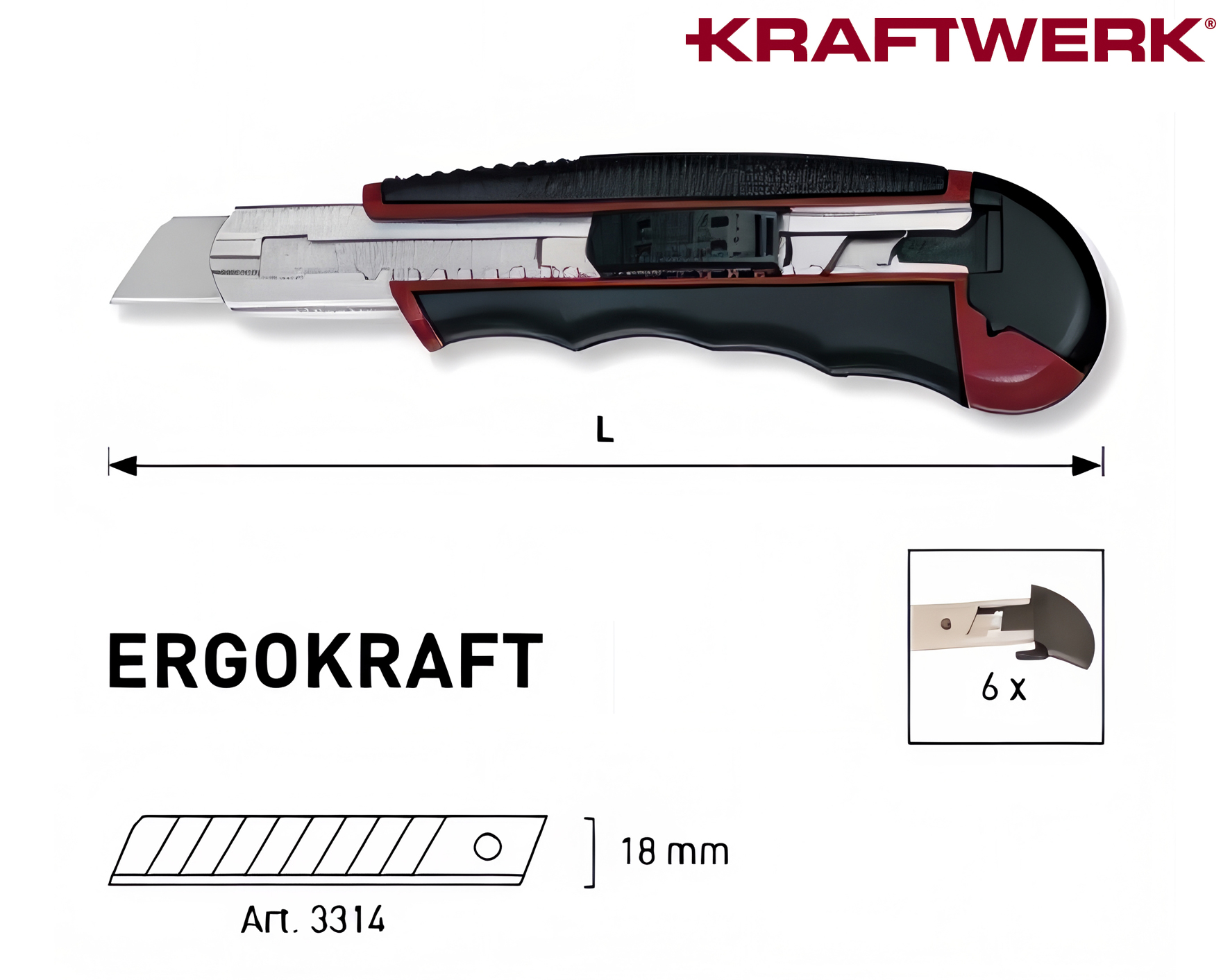 KRAFTWERK Abbrechmesser ergokraft 18 mm mit 6 Klingen 3312