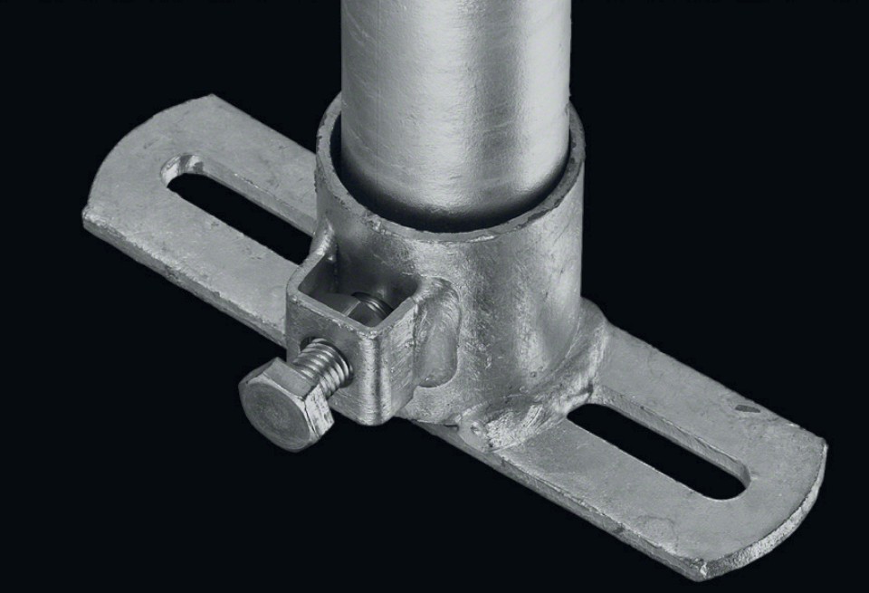 Flansch mit Schlitzplatte (Unterlage) verzinkt 1" mit 1 Schraube + Mutter M10 x 25