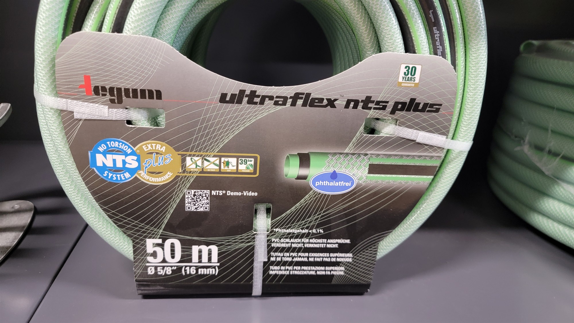 Das patentierte, doppelte Strickgewebe NTS® verhindert, dass sich der Schlauch beim Gebrauch verdreht oder abknickt, und gewährleistet höchste Resistenz gegen Druck und Ausweitung auch unter Extrembedingungen. Die Verwendung von Komponenten, die frei von Barium, Cadmium und Blei sind, und hochwertigen Weichmachern –frei von phthalaten– sorgen für extreme Biegsam- und Verformbarkeit und bieten dem Nutzer einen aussergewöhnlich leicht zu handhabenden Schlauch.