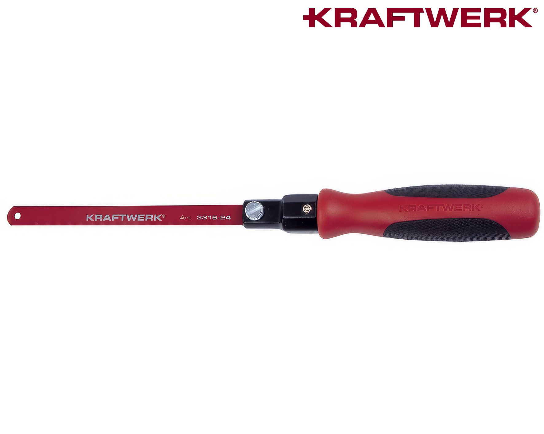 Praktischer Metall - Sägeblatthalter mit praktischem Handgriff.