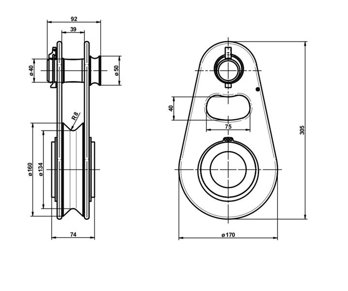 Seilrolle LT-orange GR mit Gleitlagerung 60kN