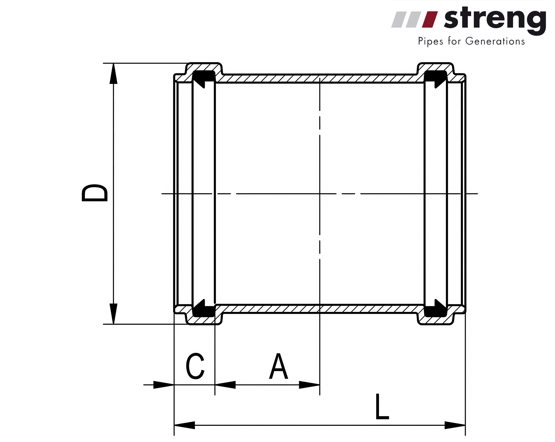 STRENG SP Überschiebe-Steckmuffen gespritzt inkl. Dichtungen