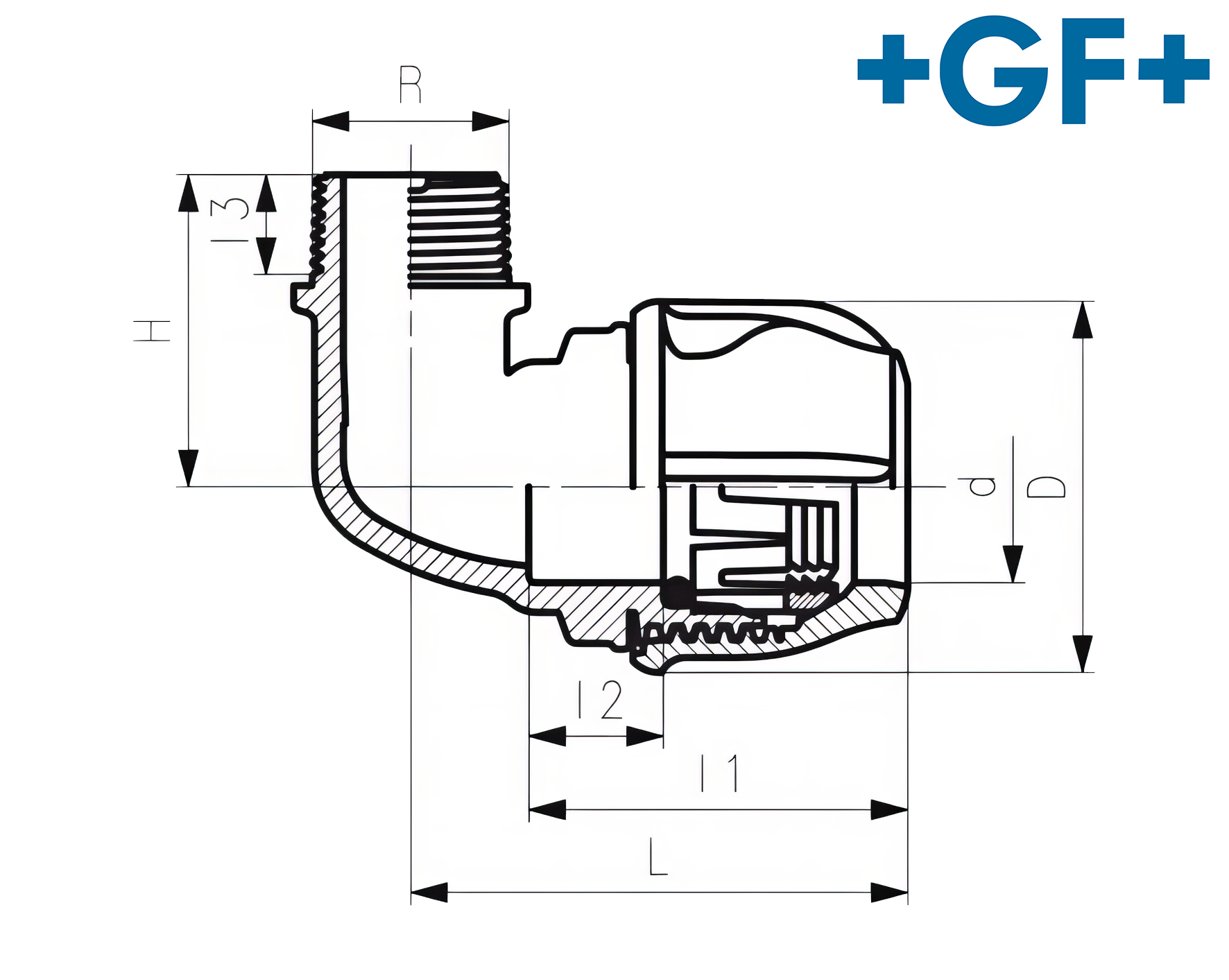 +GF+ iJoint Klemmverbinder PP NBR Übergangswinkel 90°, AG