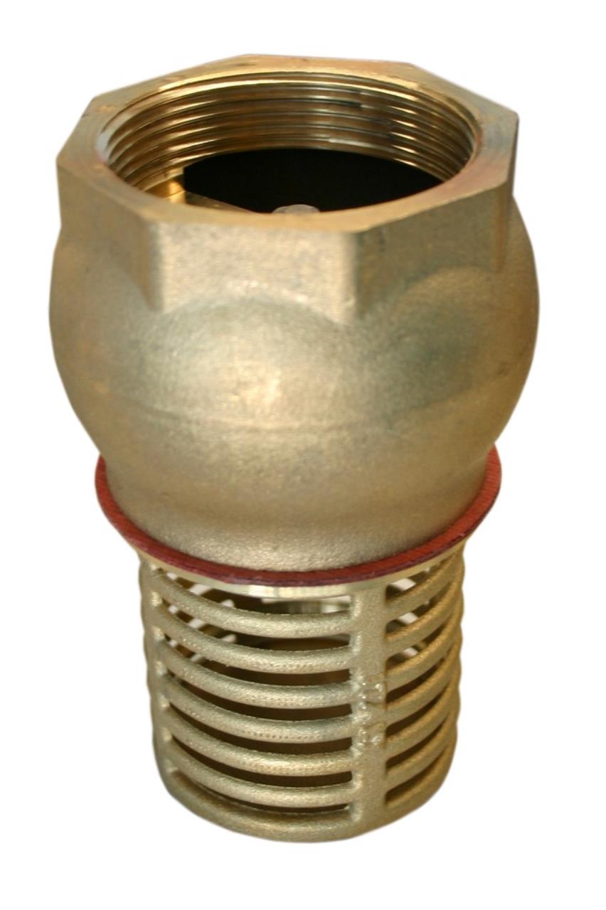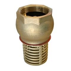Fussventil mit Filter mit horizontalen Schnitten. Das Fussventil ist eine Vorrichtung im Einwegbetrieb, d.h. es verhindert die Rückführung der unter Druck stehenden Flüssigkeit. Das Ventil ermöglicht die Filterung der Flüssigkeit, in die es eingetaucht wird und hat somit seinen Einsatz vor allem in Absauganlagen für heisses und kaltes Wasser.