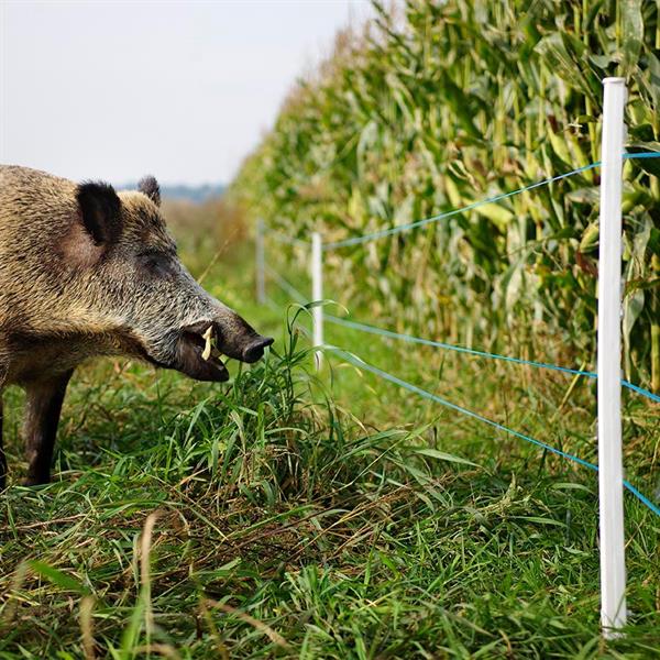 Blauer Kunststoffdraht speziell entwickelt zum Abwehren von Wild, insbesondere Wildschweinen. Studien belegen, dass Wildschweine schlecht sehen und vorwiegend Blau wahrnehmen. Schützen Sie Ihre Gewächse mit diesem besonders leitfähigen Draht.