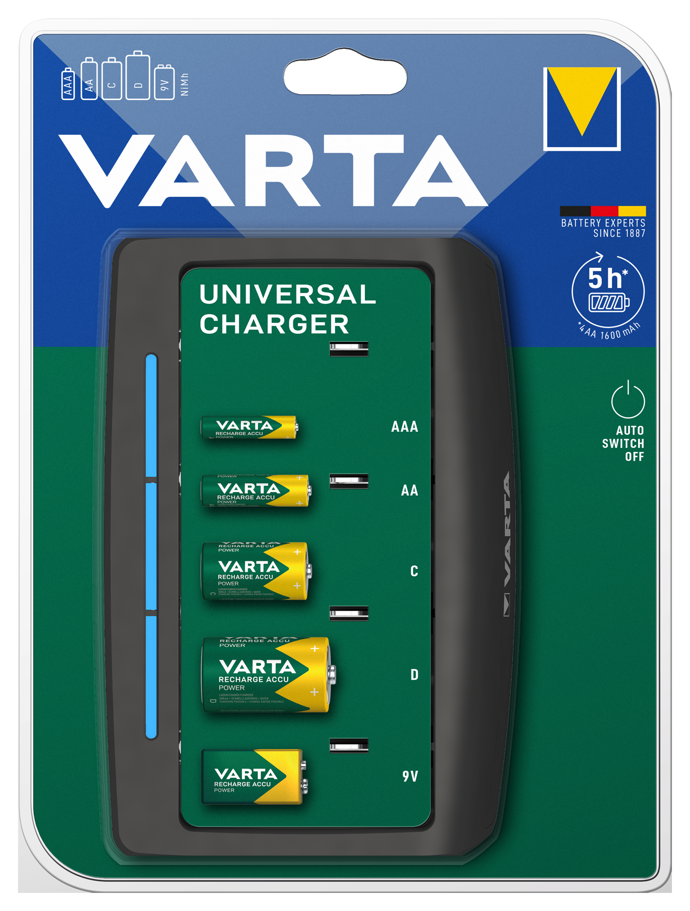 VARTA Batterieladegerät Universal Charger lädt 2 oder 4 AA AAA C D oder 1x 9V Batterie