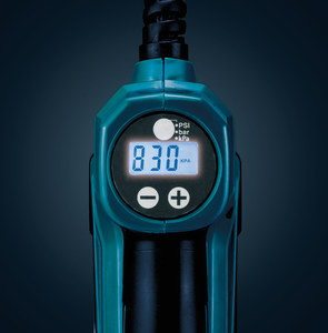 12V Akku-Kompressor mit Display und + / - Tasten zum exakten Voreinstellen des gewünschten Drucks. Der Kompressor erreicht einen Druck von bis zu 8,3 bar. Mit Adaptern für Autoreifen, Fahrradreifen mit Blitzventil oder französischem Ventil, für Luftmatratzen und Bälle. Der Schlauch ist 0,65 m lang. Maschine allein, ohne Akku, ohne Ladegerät.