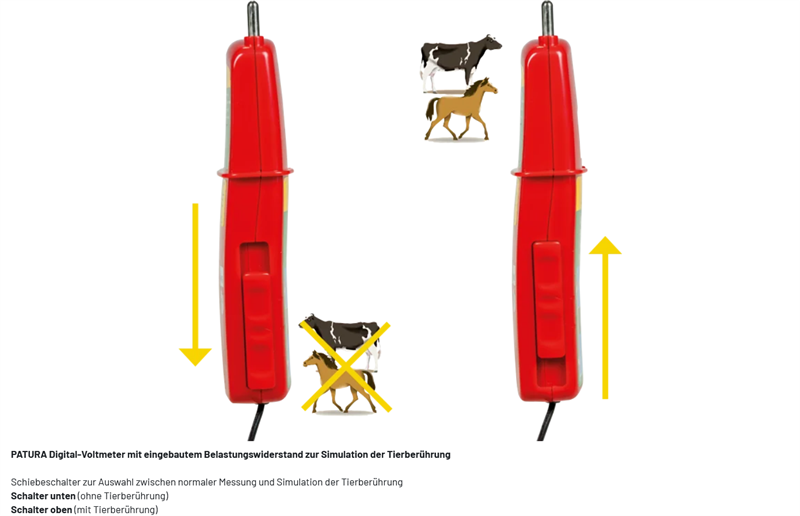 Das PATURA Digital-Voltmeter misst auch die besonders wichtige Zaunspannung bei Tierberührung. Nur wenn diese über 2000 Volt liegt, werden Ihre Tiere zuverlässig abgeschreckt.