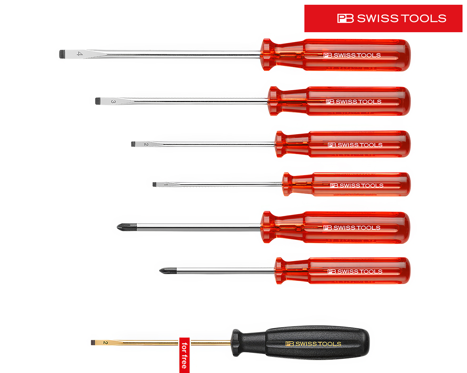 PB SWISS TOOLS Schraubenzieherset Phillips PB 1560 CBB Classic + Gold Schlitz Gr.2