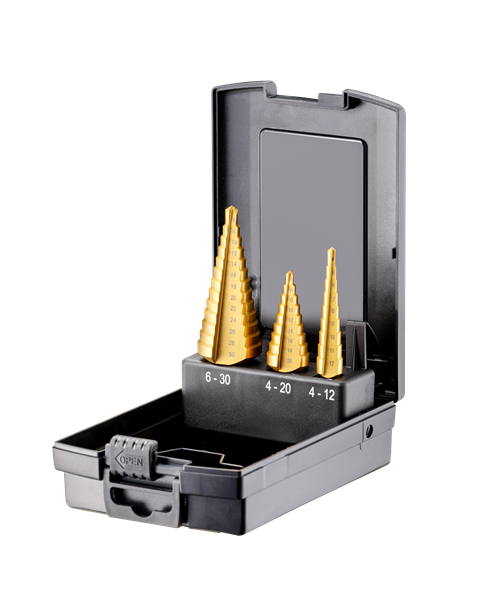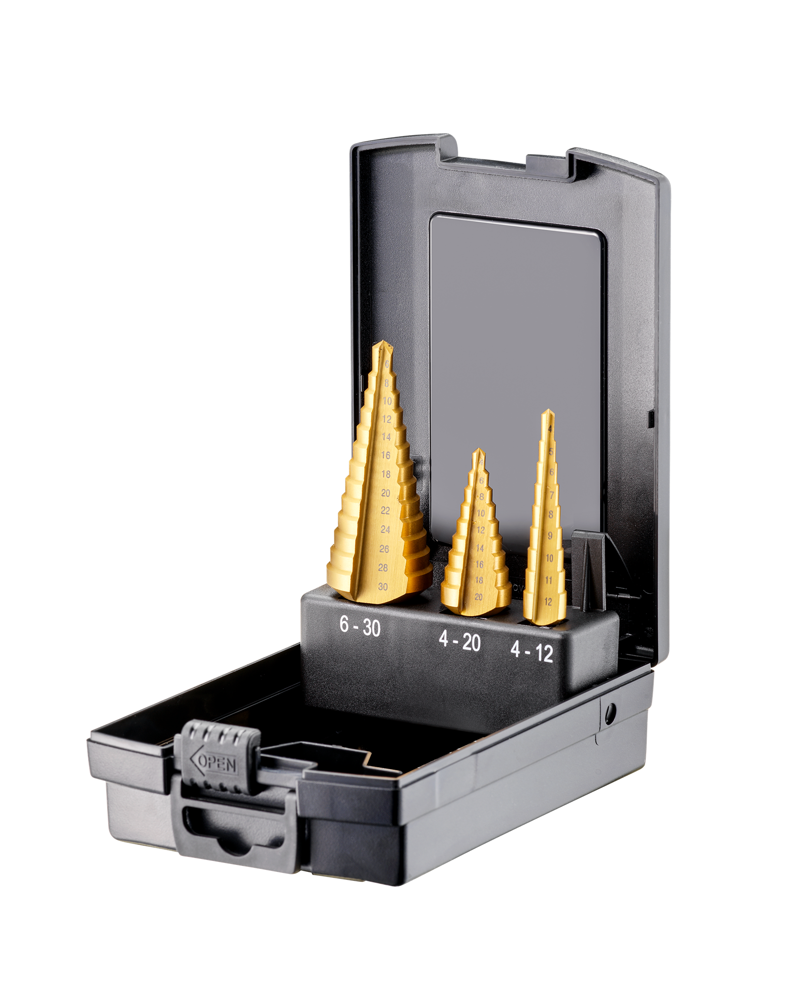 Fortec Stufenbohrersatz HSS-G mit TiN Beschichtung Stufenspitze