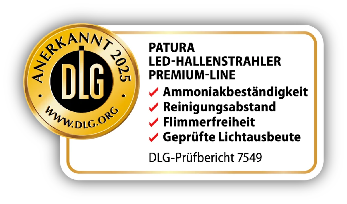 Die LED-Hallenstrahler Premium-Line von PATURA, die speziell für die Landwirtschaft konzipiert wurden, überzeugen durch qualitativ hochwertige Materialien, leistungsstarke Elektronik und präzise Verarbeitung.