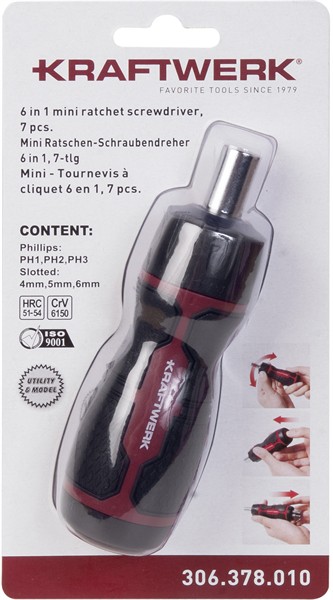 KRAFTWERK Mini Ratschen-Schraubendreher 6 in 1, 7- tlg 306.378.010