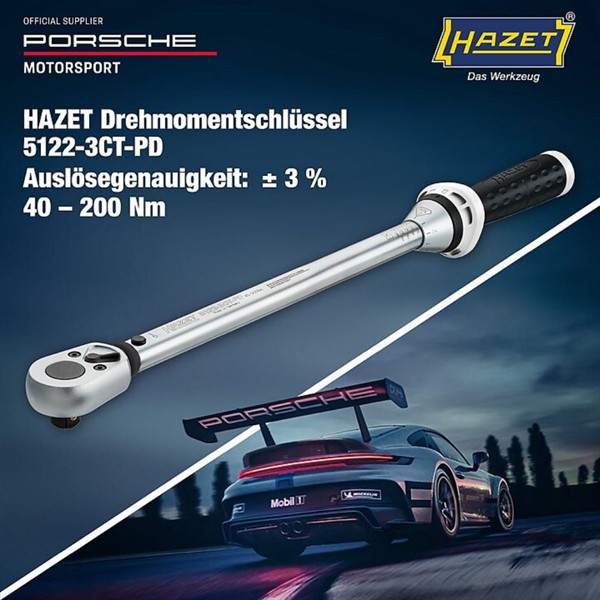 HAZET 1/2" Drehmomentschlüssel 40–?200 Nm ±3 5122-3CT-PD Porsche Motorsport