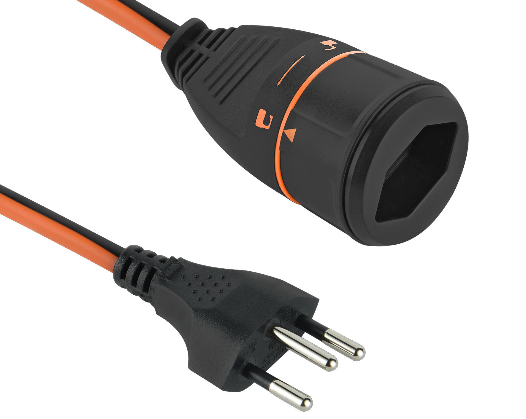 LOCK-Kupplung T13, Stecker T12 mit Lasche, 230V - 10A, orange/schwarz