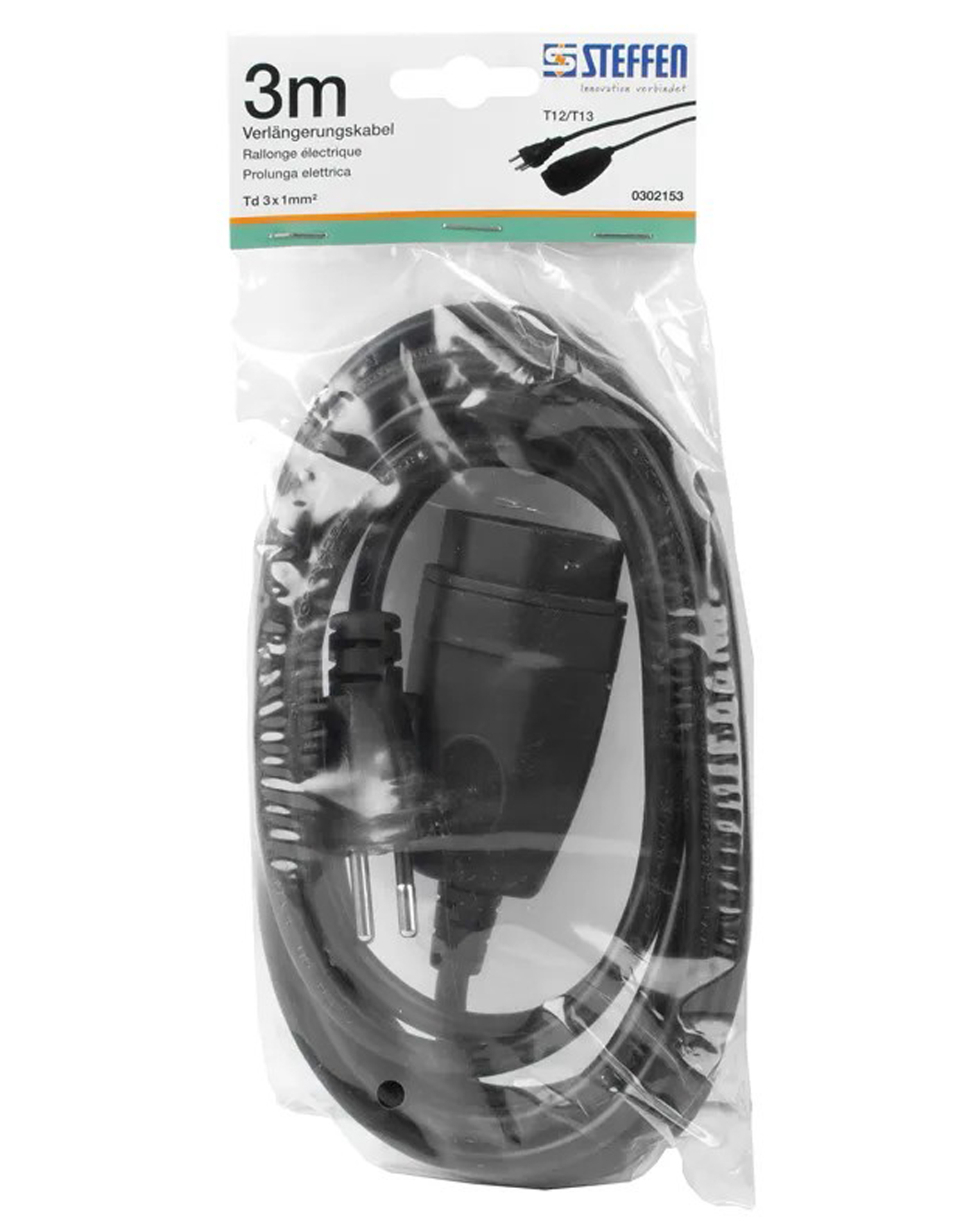 STEFFEN Verlängerungskabel 230V Td 3G 1.0 mm² 3 m schwarz