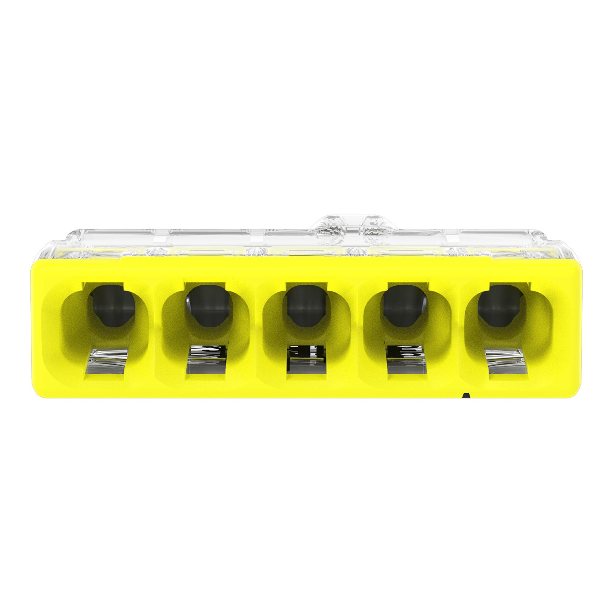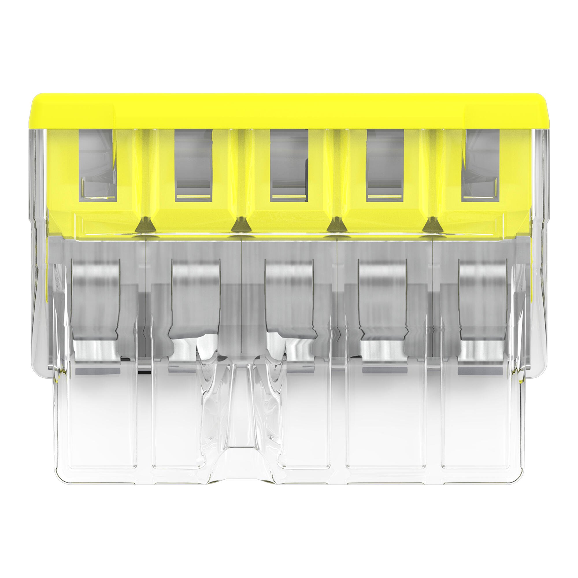 Die WAGO Steckklemme COMPACT ist für fünf eindrähtige Leiter mit einem Querschnitt von 0.5 bis 2.5 mm² ausgelegt. Sie ermöglicht eine schnelle und sichere Verdrahtung ohne Schrauben. Das transparente Gehäuse erleichtert die Sichtkontrolle der Verbindung, während die gelben Elemente eine einfache Handhabung unterstützen.