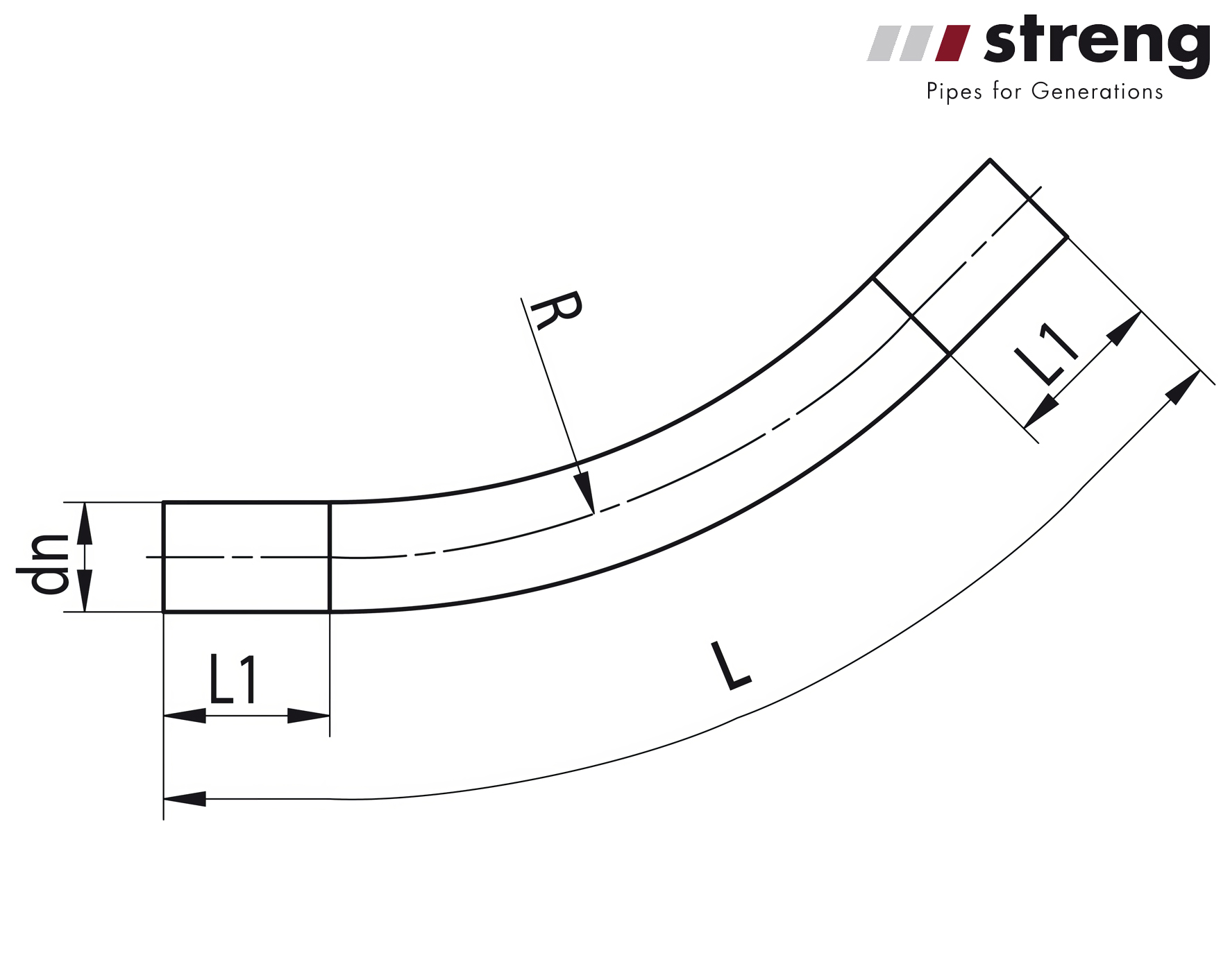 STRENG PE Bogen 45° starr dn 163/148 mm R 1500 mm zu Kabelschutzrohren KSR