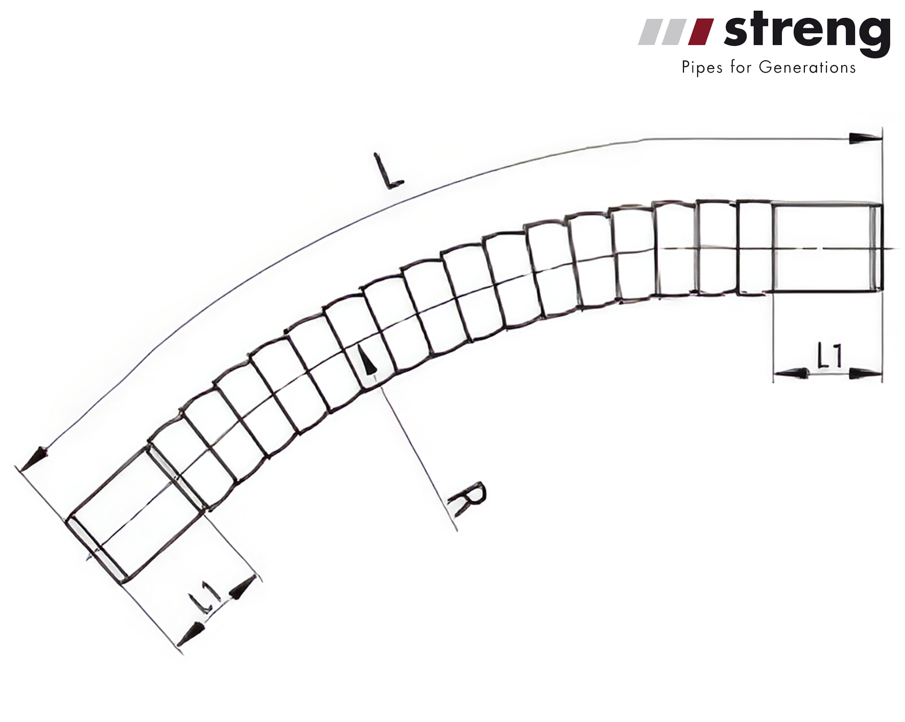 STRENG HDPE Flexbogen 45° dn 112/100 mm R 1000 mm kurz Kabelschutzrohre KSR