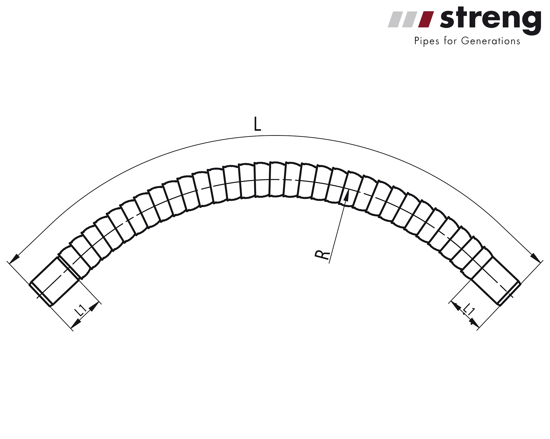 STRENG HDPE Flexbogen 90° dn 72/60 mm R 600 mm Kabelschutzrohre KSR